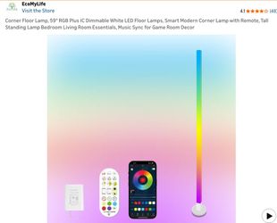 Corner Floor Lamp, 59" RGB Plus IC Dimmable White LED Floor Lamps, Smart Modern Corner Lamp with Remote, Tall Standing Lamp Bedroom Living Room Essent$25Denver, CO