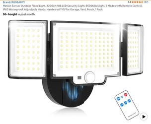 Motion Sensor Outdoor Flood Light, 4200LM 188 LED Security Light, 6500K Daylight, 3 Modes with Remote Control, IP65 Waterproof, Adjustable Heads, Hard$15Denver, CO