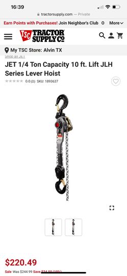 1/2 TON LEVER HOIST. 10' Lift$225Manvel, TX