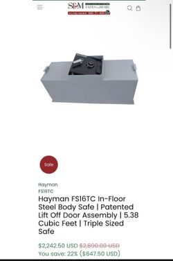 Hayman In-Floor Safe Hayman FS16TC In-Floor Steel Body Safe | Patented Lift Off Door Assembly | 5.38 Cubic Feet | Triple Sized Safe$800City Of Industry, CA