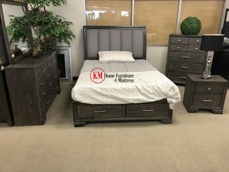 6PCS BEDROOM SET GRAY FABRIC AND STORAGE BED NIGHT STAND DRESSER MIRROR$949Houston, TX