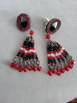 ROXANNE ASSOULIN Red And Black Crystal Earring From The 80s$90Palm City, FL