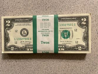 100 Pack Of $2 Two Dollar Bank Notes UNCIRCULATED & SEQUENTIAL SERRIAL NUMBERS π$210Culver City, CA
