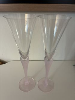 Pair of Pink Sasaki Crystal Aegean Fluted Champagne Glass Frosted Shell Stem $15 OBO$15San Francisco, California