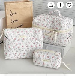 3 pcs Quilted Floral Pattern Cosmetic Bags With Zippers$15City Of Industry, CA