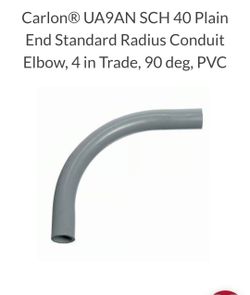 Carlon® UA9AN SCH 40 Plain End Standard Radius Conduit Elbow, 4 in Trade, 90 deg, PVC$15Hoffman Estates, IL