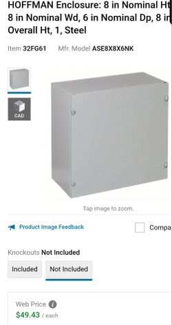 HOFFMAN Enclosure: 8 in Nominal Ht, 8 in Nominal Wd, 6 in Nominal Dp, 8 in Overall Ht, 1, Steel$20Hoffman Estates, IL