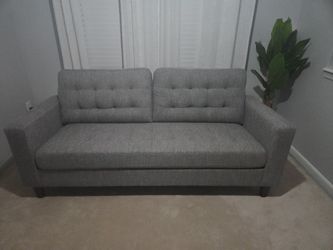 Brynn 76 in. Light Gray Polyester Upholstered 3-Seat Square Arm Sofa with Removable Cushions and Buttonless Tufting