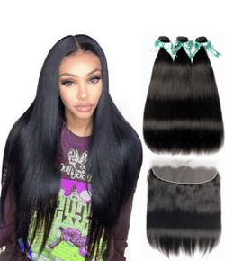 ALLRUN Straight Hair Bundles with Frontal 100% Brazilian Straight Virgin Human Hair 3 Bundles with Lace Frontal Natural Black Color (22 24 26+20Lace)$129Diamond Bar, CA