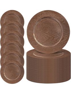 MAONAME 50 Bulk Charger Plates — 13-Inch Faux Wood Chargers for Dinner Plates, Brown Farmhouse-Style Plate Chargers, Round Plastic Table Chargers for $85Phoenix, AZ