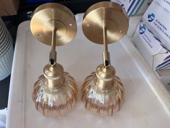 Set of 2 Brass Wall Sconces with Amber Glass Shades – Modern Vintage Style$50Newnan, GA