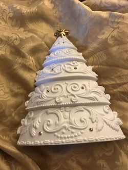 White Porcelain Christmas Tree Music Box with Gold Accents – Holiday Décor$20Newnan, GA