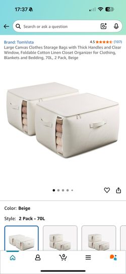 Large Canvas Clothes Storage Bags with Thick Handles and Clear Window, Foldable Cotton Linen Closet Organizer for Clothing, Blankets and Bedding, 70L,$25Duluth, GA