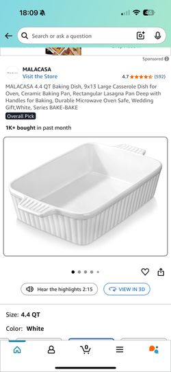 MALACASA 4.4 QT Baking Dish, 9x13 Large Casserole Dish for Oven, Ceramic Baking Pan$17Duluth, GA