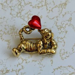 Vintage Disney Valentines Tigger Love Brooch Pin Spring 3D Heart Red Enamel Gold$20Seal Beach, CA