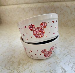 Disney Mickey & Minnie Ramekin Hearts Valentines Day Snack Bowl Set Dish Decor$12Seal Beach, CA