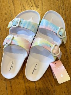 SCL Stoney Clover Lane x Target Pastel Rainbow Tie Dye Slide Sandals Heart 8$20Seal Beach, CA
