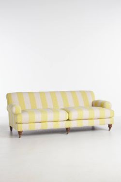 ANTHROPOLOGIE Cecilia Willoughby Bouclé Two-Cushion Sofa YELLOW STRIPE COASTAL$800Huntington Beach, CA