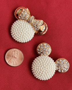 Vintage Disney Mickey & Minnie Mouse 3D icon face Gold Pearl Crystal Brooch Pin$40Seal Beach, CA