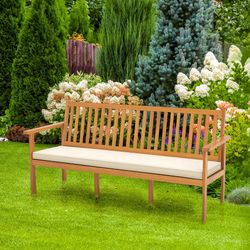 Acacia Wood Outdoor Bench, 3-Seat Patio Bench with Removable Seat Cushion, needs assembly, new $90Victorville, CA