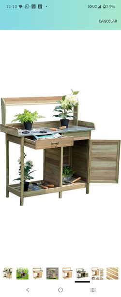 Outdoor Potting Bench Garden Wooden Work Station Metal Tabletop Cabinet, New, Need Assembly $100Victorville, CA