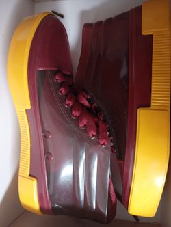 Melissa Gadget hi-top platform sneakers in red/wine and yellow. $35Oakland Park, FL
