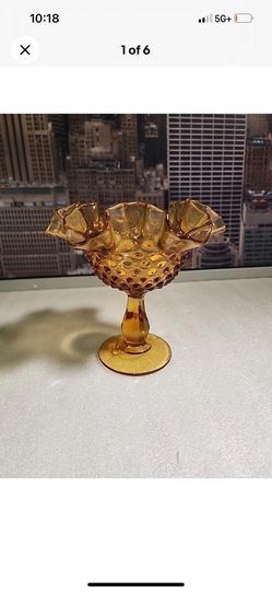 Vintage Fenton Glass Colonial Amber Thumbprint Ruffled Candy Compote Dish 6"$30Oxnard, CA
