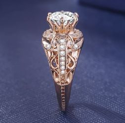 14k Rose Gold Micro Inlay Diamond Ring With White Topaz $10No Fort Myers, FL