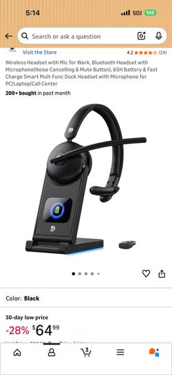 Wireless Headset with Mic for Work, Bluetooth Headset with Microphone(Noise Cancelling & Mute Button), 65H Battery & Fast Charge Smart Mult-Func Dock$25San Antonio, TX