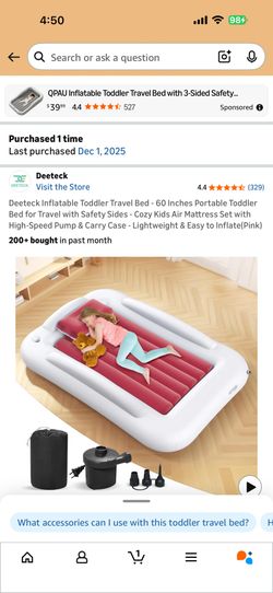 Deeteck Inflatable Toddler Travel Bed - 60 Inches Portable Toddler Bed for Travel with Safety Sides - Cozy Kids Air Mattress Set with High-Speed Pump $20San Antonio, TX