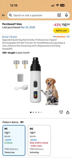 Upgraded Quiet Dog Nail Grinder, Professional 2-Speed Rechargeable Pet Nail Trimmer for Small/Medium/Large Dogs & Cats, Painless Paw Grooming with 2 R$10San Antonio, TX