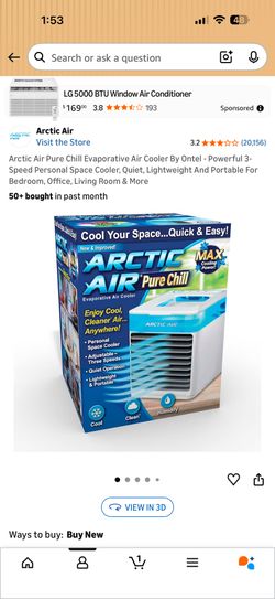 Arctic Air Pure Chill Evaporative Air Cooler By Ontel - Powerful 3-Speed Personal Space Cooler, Quiet, Lightweight And Portable For Bedroom, Office, L$15San Antonio, TX