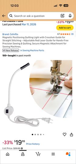 Magnetic Positioning Quilting Light with Crosshair Guide for Straight Stitching – Adjustable Red Laser Guide for Hands-Free Precision Sewing & Quiltin$6San Antonio, TX