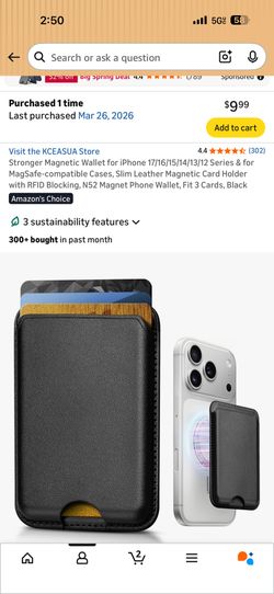 Stronger Magnetic Wallet for iPhone 17/16/15/14/13/12 Series & for MagSafe-compatible Cases, Slim Leather Magnetic Card Holder with RFID Blocking, N52$5San Antonio, TX