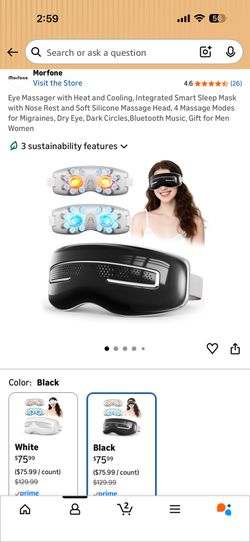Eye Massager with Heat and Cooling, Integrated Smart Sleep Mask with Nose Rest and Soft Silicone Massage Head, 4 Massage Modes for Migraines, Dry Eye,$25San Antonio, TX