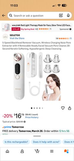 5-Speed Blackhead Remover Vacuum, Wireless Charging Nose Pore Extractor with 4 Removable Heads,Facial Vacuum Pore Cleaner,30-Second Keratin Softening,$8San Antonio, TX