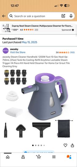awasky Steam Cleaner Handheld: 1200W Fast 10-Sec Heat-Up-750mL (25oz) Tank-No Cooling-Refill Anytime-Lockable Steam Trigger-14-Piece Kit Hand Held Ste$15San Antonio, TX