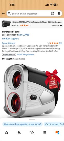 Upgraded 0.5 Second Easily Lock on a Pin Golf Rangefinder with Slope 2X HD Bright LCD, 1500 Yards Range Finder for Golf/Hunting, 7X Magnification with$40San Antonio, TX