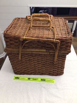 1970’s Vintage Wicker Picnic Basket with Lid and Handles Never Used Camping, Fishing, Sport Events$10Naperville, IL