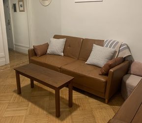 Brown Faux Leather Sleeper Sofa$50Weehawken Township, New Jersey