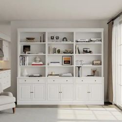 Famapy 6-Door Modern Bookcase with 12 Open Shelves 3 Drawers and Paint finish 102.4''L x 15.7''W x 90.9''H White$300Upland, CA