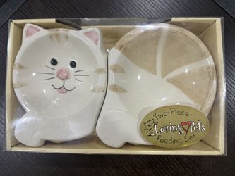 Ceramic Cat feeding set$15Mcallen, TX