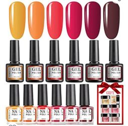 6 Colors Red Orange Nail Polish & 6 Gel Nail Polish Set