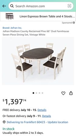 Jofran Madison County Reclaimed Pine 66" Oval Farmhouse Seven-Piece Dining Set, Vintage White$875Mokena, IL