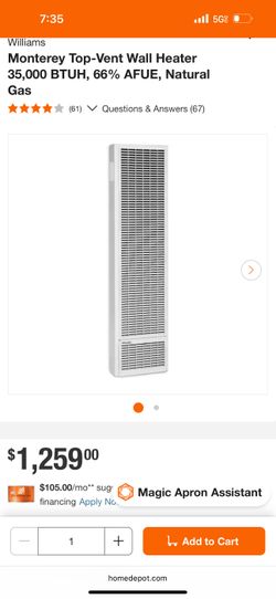 NEW Williams 35,000 BTU Wall Heater 35k GAS Furnace Model # (contact info removed)A$700Alhambra, CA