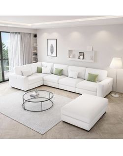127" White Modular U-Shaped Sofa with Ottoman - Convertible Layout, High-Density Foam & Solid Wood Frame$499Ontario, CA