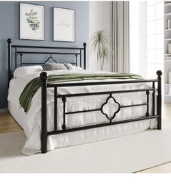 O07 $75 14 Inch Full Size Metal Platform Bed Frame, Vintage Victorian Style, Wrought Iron Headboard and Footboard/Mattress Foundation for Storage/No $75Ontario, CA