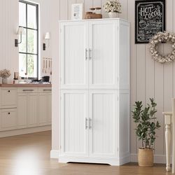 O741 $130 71.3" Tall Kitchen Pantry Storage Cabinet, Modern Hutch Cabinet with Storage Shelves, Food Pantry Cabinet with Storage & Silver Handle, Fre$130Upland, CA