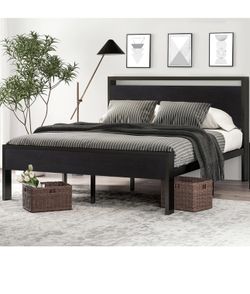 O17 $80 ❤️ 14 Inch Queen Size Metal Platform Bed Frame with Wooden Headboard and Footboard, Mattress Foundation, No Box Spring Needed, Large Under Bed$80Jurupa Valley, CA