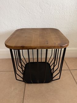 Black metal side table with wood top$25Miami, FL